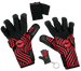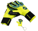 El tejido transpirable (50%) favorece la ventilación, reduciendo la acumulación de humedad. Cuentan con muñequera removible, cierre en velcro ajustable (5%) y vendaje elástico (5%) que aseguran firmeza sin restringir el movimiento. Su corte negativo con costuras internas de precisión brinda un ajuste más ceñido y control del balón, ideal para arqueros que buscan precisión y comodidad.
