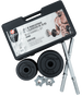 Discos: Ocho discos de hierro fundido con recubrimiento en PVC para proteger el suelo y reducir el ruido. La distribución típica es de cuatro discos de 5 lb y cuatro discos de 2.5 lb, permitiendo múltiples combinaciones de peso.